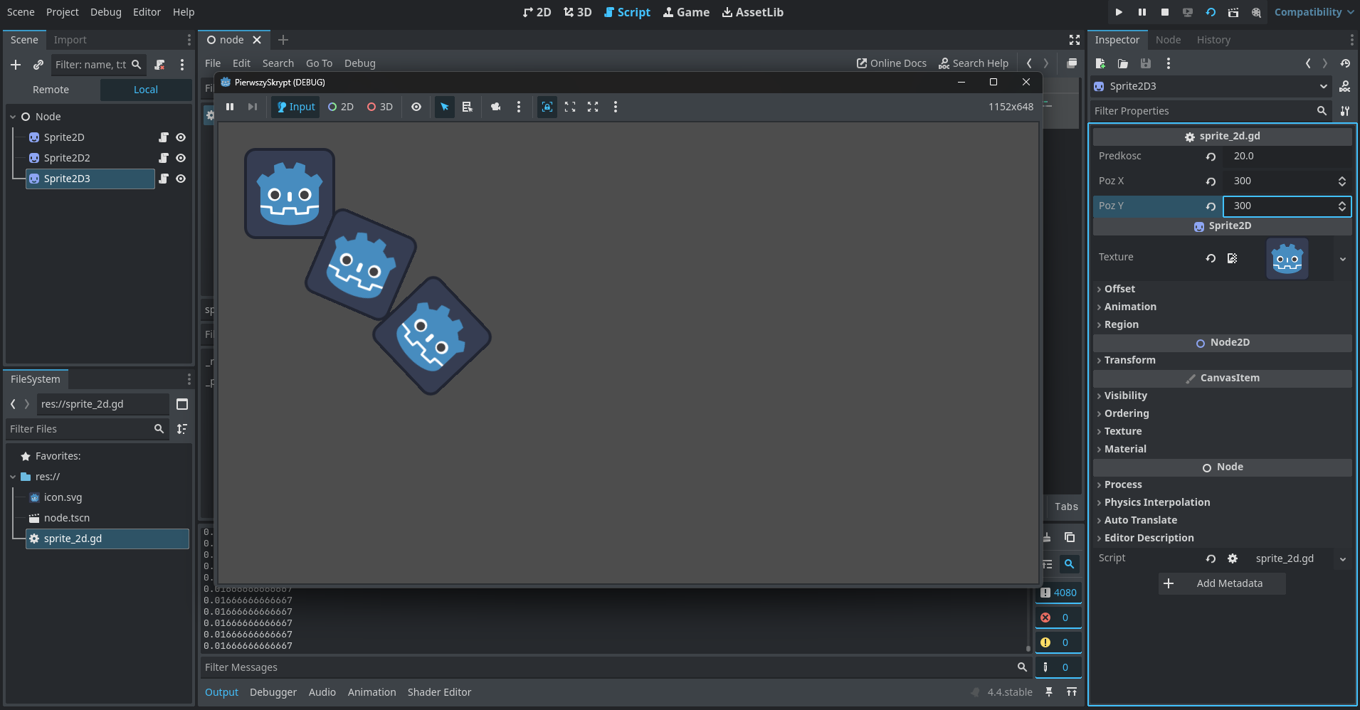 Podstawy GDScript – część 3 – obliczenia, operatory, adnotacje i ruchome sprajty (Godot tutorial po polsku)